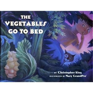 Corncobs "snuggle up in corn silk" and spinach plants dream of "wild green wonderlands" as night descends upon the garden. These anthropomorphized vegetables have a surreal quality, their sly smiles signifying more of a fantasy than a bedtime story. GrandPre ( Chin Yu Min and the Ginger Cat ) again displays her flair for unusual perspectives and lighting; however, the sharp angles and elongated characters of her debut picture book give way here to a wavy elegance: a row of dancing carrots seems suspended, as if underwater. Despite some inviting imagery and clever wordplay (the potatoes close their eyes, the onions weep themselves to sleep), King's text does not live up to the promise of the artwork. The frustratingly uneven meter of the verse impedes the flow: "Every pea and carrot / Every head of lettuce / Cabbage, bean, and brussels sprout / Will be tucked in / Before the stars come out." Deep, purple skies cast a romantic glow over the slumbering vegetables, yet the magic, like the verse, seems forced. Ages 2-6. Copyright 1994 Reed Business Information, Inc.